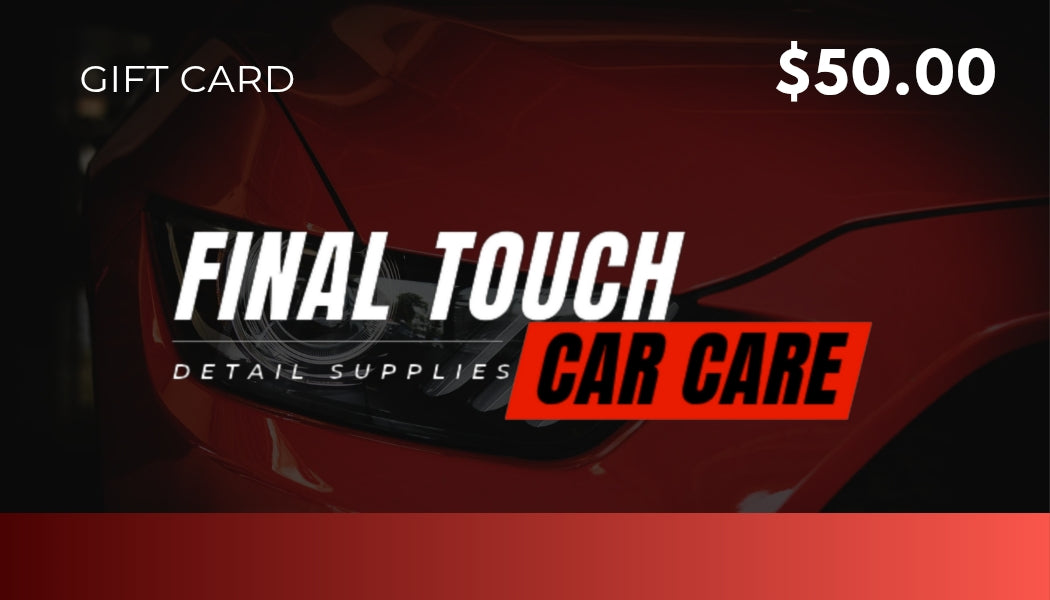 La Gift Card de Final Touch Car Care Detail Supplies es el regalo perfecto para los amantes del cuidado automotriz. Disponible en diferentes denominaciones, permite a tus familiares, amigos o colegas elegir entre nuestra amplia gama de productos premium para limpieza, protección y detallado profesional.